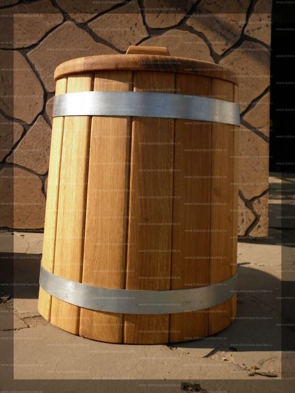 Качественная и большого размера дубовая кадка объёмом 50 литров станет незаменимым помощником и проводником в мире вкусных и хрустящих солений. Кадка 50 литров придаст кухне уют, непередаваемый запах маринада, облегчит готовку и дальнейшее хранение ваших солений. Также станет отличным подарком для вас и ваших близких. Напоминаем вам, что категорически в дубовой кадке засаливать белые грибы, яблоки и капусту, так как из-за дубильных веществ, соленья может почернеть!!!! Если вы не знаете где купить эту универсальную дубовую кадку 50 литров, то адрес магазина бондарных изделий указан в разделе контакты.